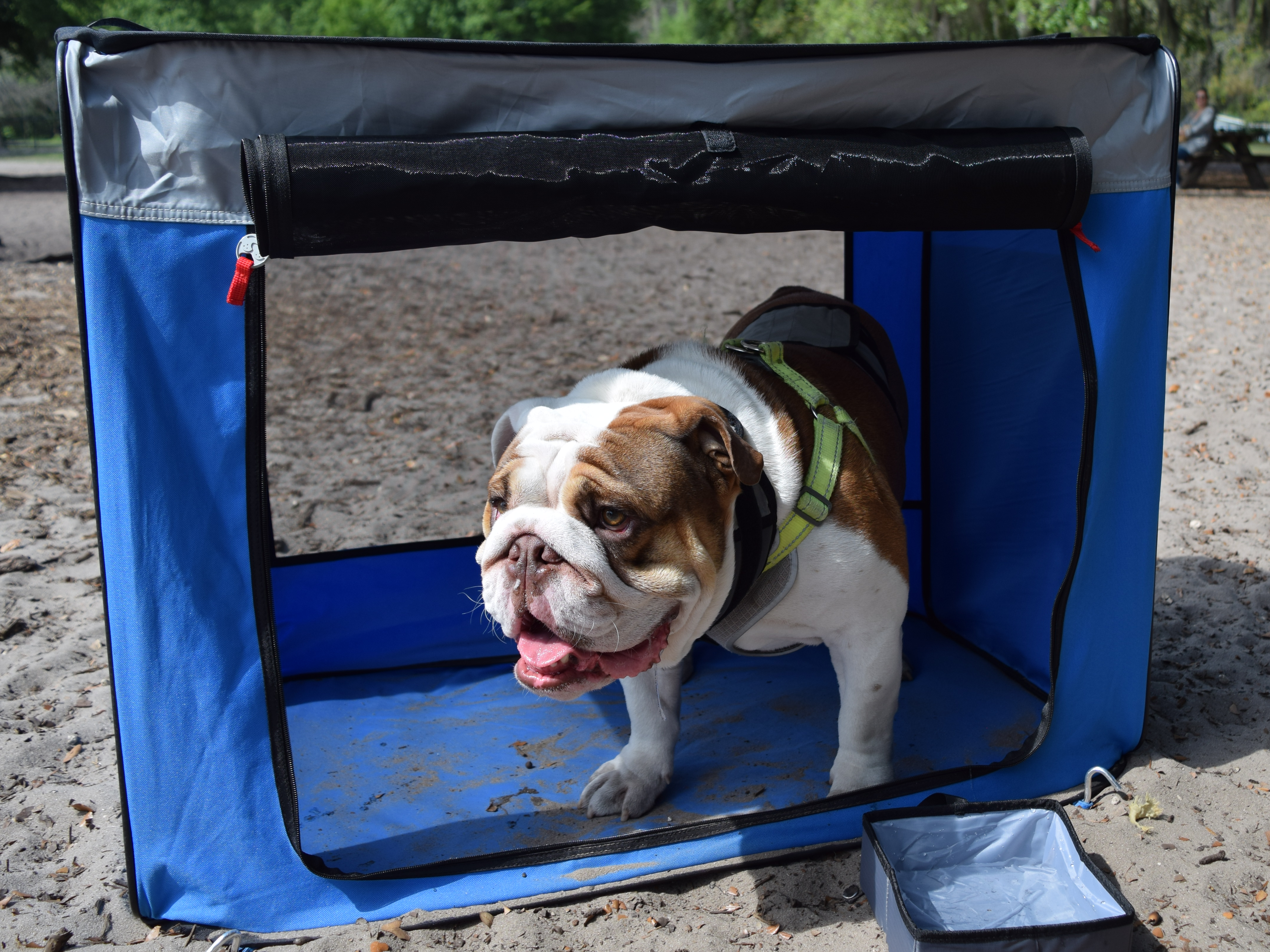Keep your dog safe from harmful UV rays with this lightweight, portable shade. Designed to block 98% of UV rays, it provides a cool, ventilated space for your dog to relax. (For shade only—not intended as a containment device.)